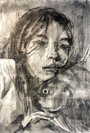This charcoal series captures the experience of post-traumatic stress disorder (PTSD) through marine symbolism and metaphors, that is, the desperate longing to heal and forgive, an inability to live in the present, trapped in reruns of the past, and giving into the comfort of isolation.